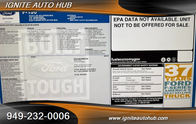This 2015 Ford F-150 XLT is built to work — and to win. Oxford White exterior, Dark Earth Gray cloth interior, and a brutally capable 5.0L Flex Fuel V8 putting out 385 horsepower and 387 lb-ft of torque. This truck is in excellent overall condition and ready to tackle anything from daily driving to heavy hauling with authority.